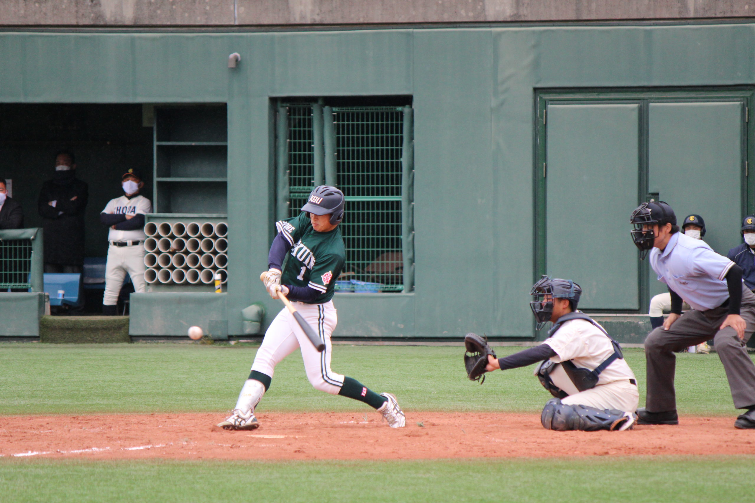 神戸学院大学は南港中央野球場にて行われた大阪商業大学との初戦は、0-7で敗れました。
