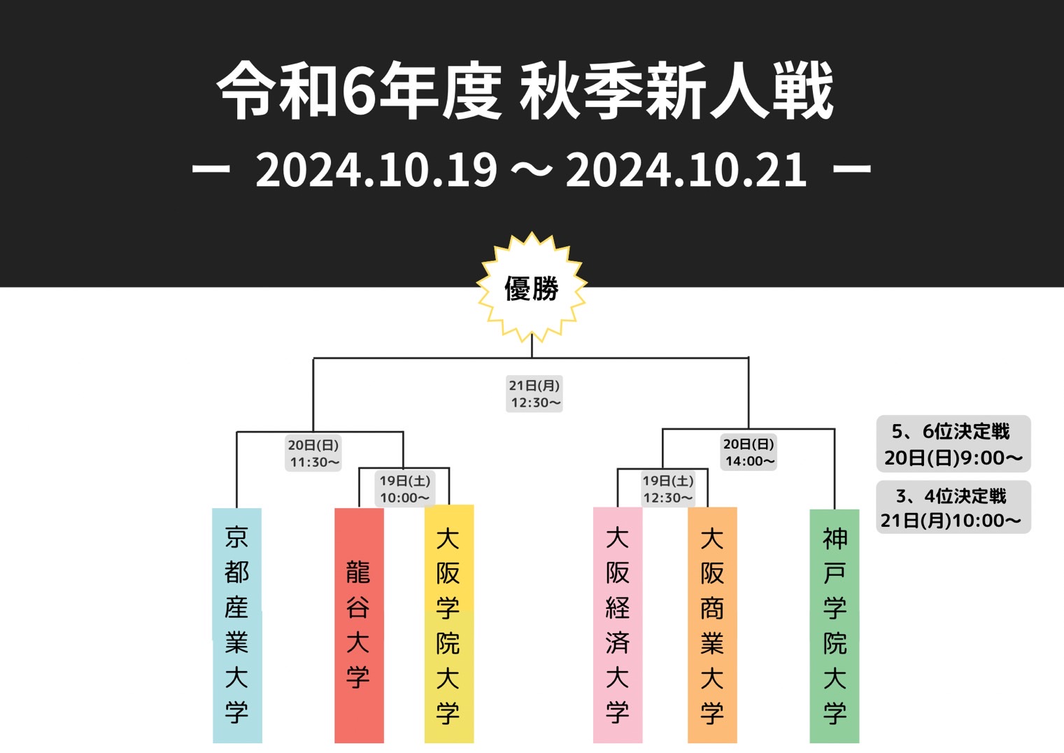 10月19日(木)には秋季新人戦初戦(VS京都産業大学)が行われます。より一層精進してまいりますので、今後とも応援の程宜しくお願い致します。